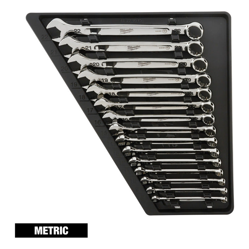 Kit de 15 Llaves Combinadas Métricas de la marca Milwaukee modelo 48-22-9515.