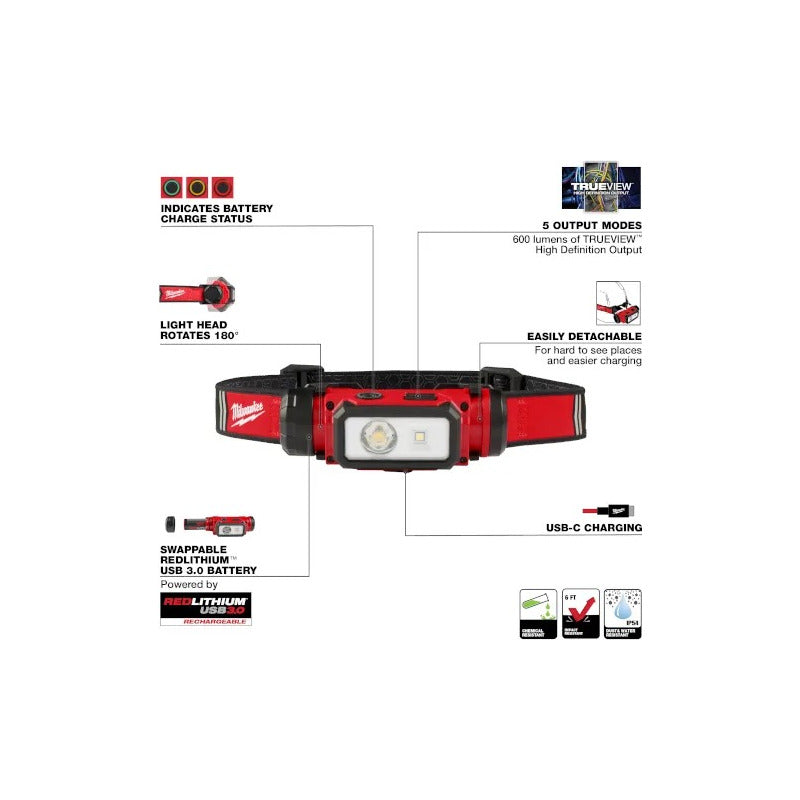 - Las luces alimentadas por USB REDLITHIUM™ se mantienen más brillantes por más tiempo, ofrecen un tiempo de carga 2 veces más rápido y le dan más tiempo de operación con una batería desmontable e intercambiable.