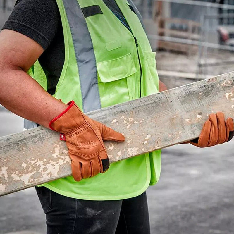 Nuestros guantes de piel de cabra están diseñados con un cómodo cuero de primera calidad y una palma reforzada que dura más. El nudillo MILWAUKEE® SMARTSWIPE™ está diseñado para permitirle el uso de pantallas táctiles sin quitarse los guantes. Además, el pulgar trapezoidal proporciona un ajuste cómodo. Estos guantes de trabajo de cuero de alta resistencia están equipados con una lengüeta para ponerlos y quitarlos fácilmente en los lugares de trabajo más difíciles.