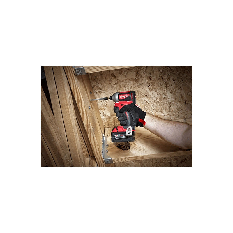 El atornillador de impacto hexagonal sin escobillas MILWAUKEE® M18™ de 1/4" es la solución compacta de impacto de 18 V más rápida de su clase. La tecnología del motor sin escobillas está optimizada para el atornillador, proporcionando 1600 in-lb de torque y una mayor autonomía. El motor, diseñado para este atornillador de impacto, ofrece una herramienta más pequeña (5,1"), prolonga la vida útil de la batería y mejora considerablemente el acceso a espacios pequeños y estrechos. La electrónica REDLINK™ integrada optimiza el consumo de energía de las baterías REDLITHIUM™, alcanzando 3400 RPM para una velocidad y un rendimiento óptimos. El control de accionamiento de 3 modos DRIVE CONTROL™ ofrece un control inigualable para una amplia gama de aplicaciones, tanto pequeñas como grandes. El atornillador de impacto también permite insertar la punta con una sola mano para facilitar su intercambio. El atornillador de impacto hexagonal sin escobillas de 1/4" de 3 velocidades es compatible con todas las baterías M18 para que pueda trabajar con mayor intensidad durante más tiempo.