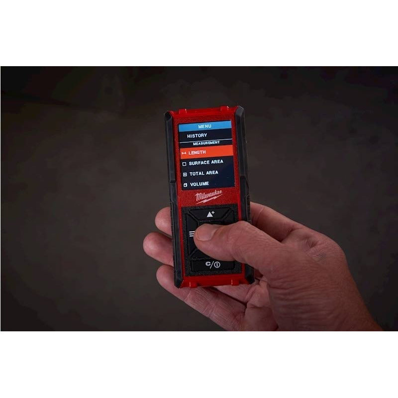 Los distanciómetros láser de 150' de Milwaukee® están diseñados para facilitar las mediciones en todas las orientaciones y cuentan con una gran variedad de funcionalidades nuevas. Las pantallas a color de 2" brindan la máxima visibilidad en condiciones de poca luz. Cuentan con una interfaz de usuario simplificada que fue diseñada desde cero para una navegación rápida, de manera que los usuarios puedan seleccionar rápidamente la función y midan con el mínimo tiempo de inactividad. Para facilitar el uso aún más, el distanciómetro láser de 150' incluye una palanca integrada con detección automática de 2 posiciones, de manera que los usuarios puedan medir fácilmente en las esquinas. Los distanciómetros láser de 150' ofrecen varias funciones distintas de medición que permiten a los usuarios sumar o restar valores y calcular la distancia linear, el área de la superficie, el área total y el volumen. Además, cada herramienta incluye almacenamiento de memoria para 30 lecturas y un sobremoldeado resistente a los impactos para protección de las condiciones difíciles del lugar de trabajo. Los distanciómetros láser de Milwaukee® también cuentan con un botón lateral de disparo para una experiencia más fácil y ergonómica cuando mida en todas las direcciones.
